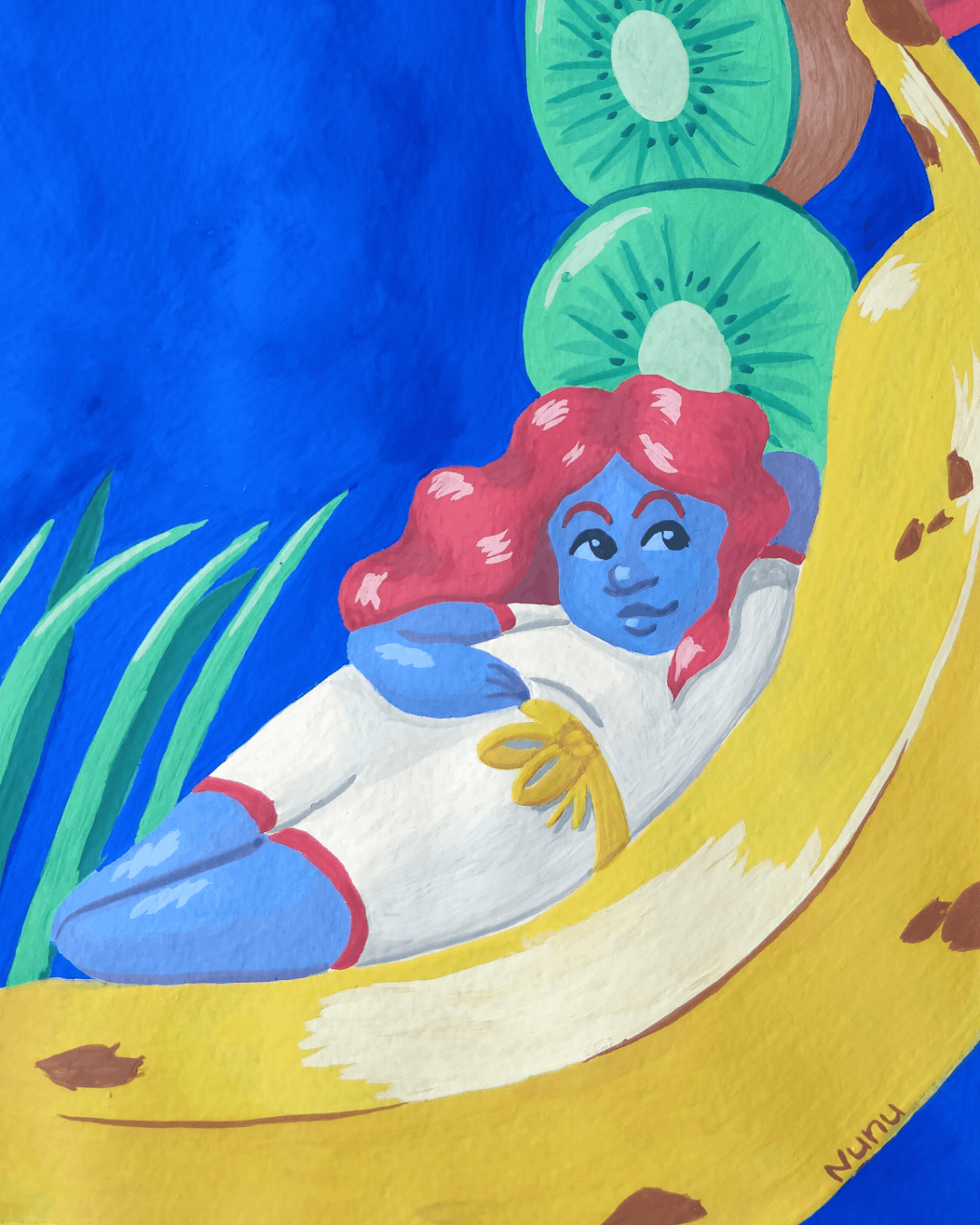Mais là encore, j’en ai discuté avec mon compagnon, et il a tranché : « Tu devrais mettre du volume, parce que c’est ce qui marche bien dans tes gouaches. Tu vas te faire chier, mais le résultat sera mieux. Prends ton temps et accepte de te dire que tu peux tout recommencer si ça ne te convient pas ».