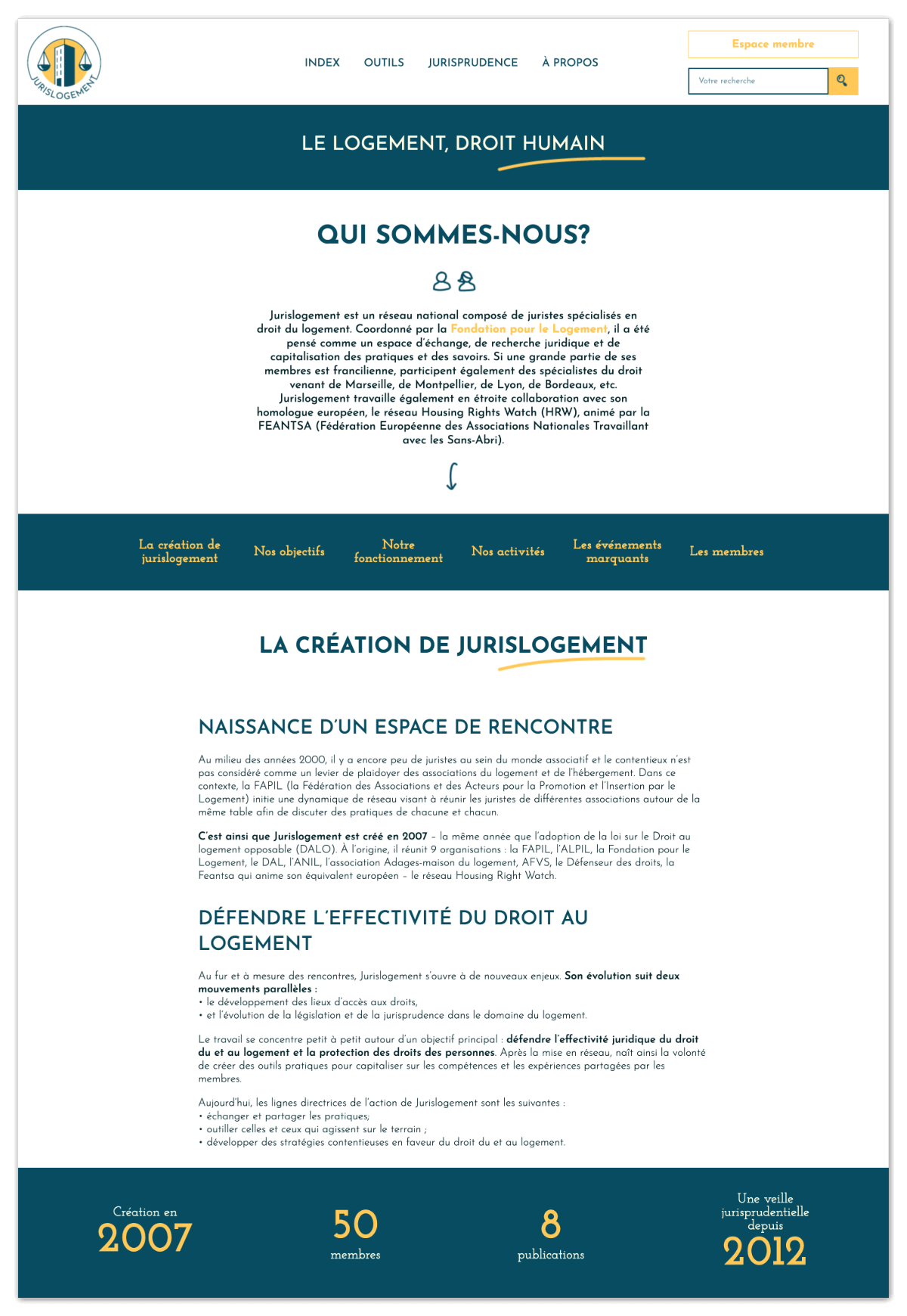 Le site internet de Jurislogement est en activité depuis plusieurs années. Il regroupe une quantité importante de données juridiques dans le but de les rendre accessibles aux praticiens et praticiennes du droit. Mon rôle a été de repenser le design et le contenu écrit pour améliorer la navigation et l’accessibilité sur les moteurs de recherche.