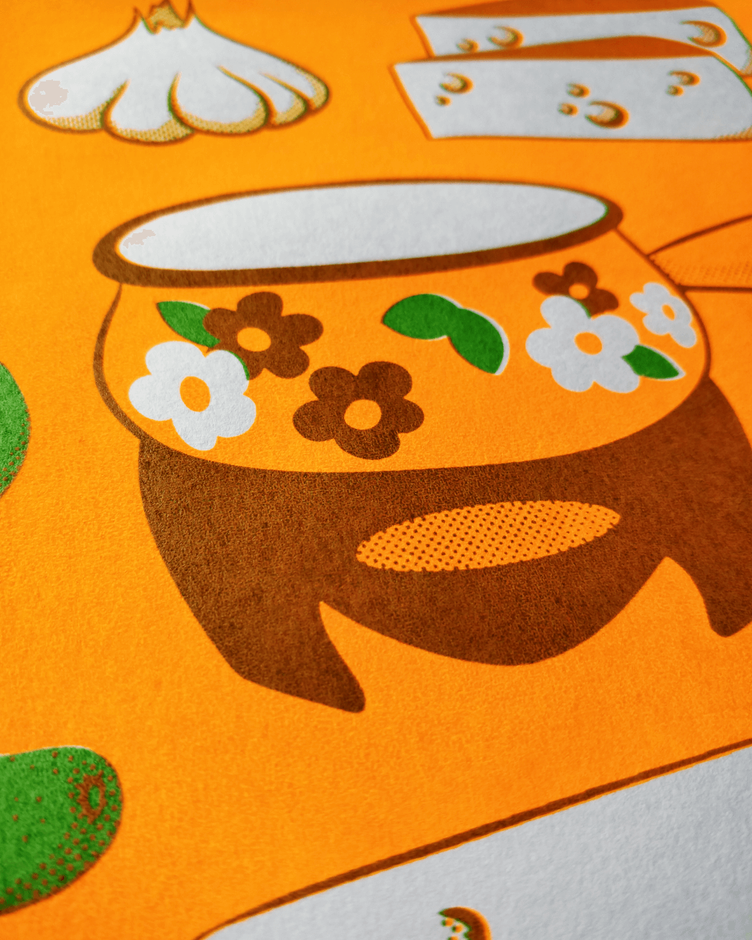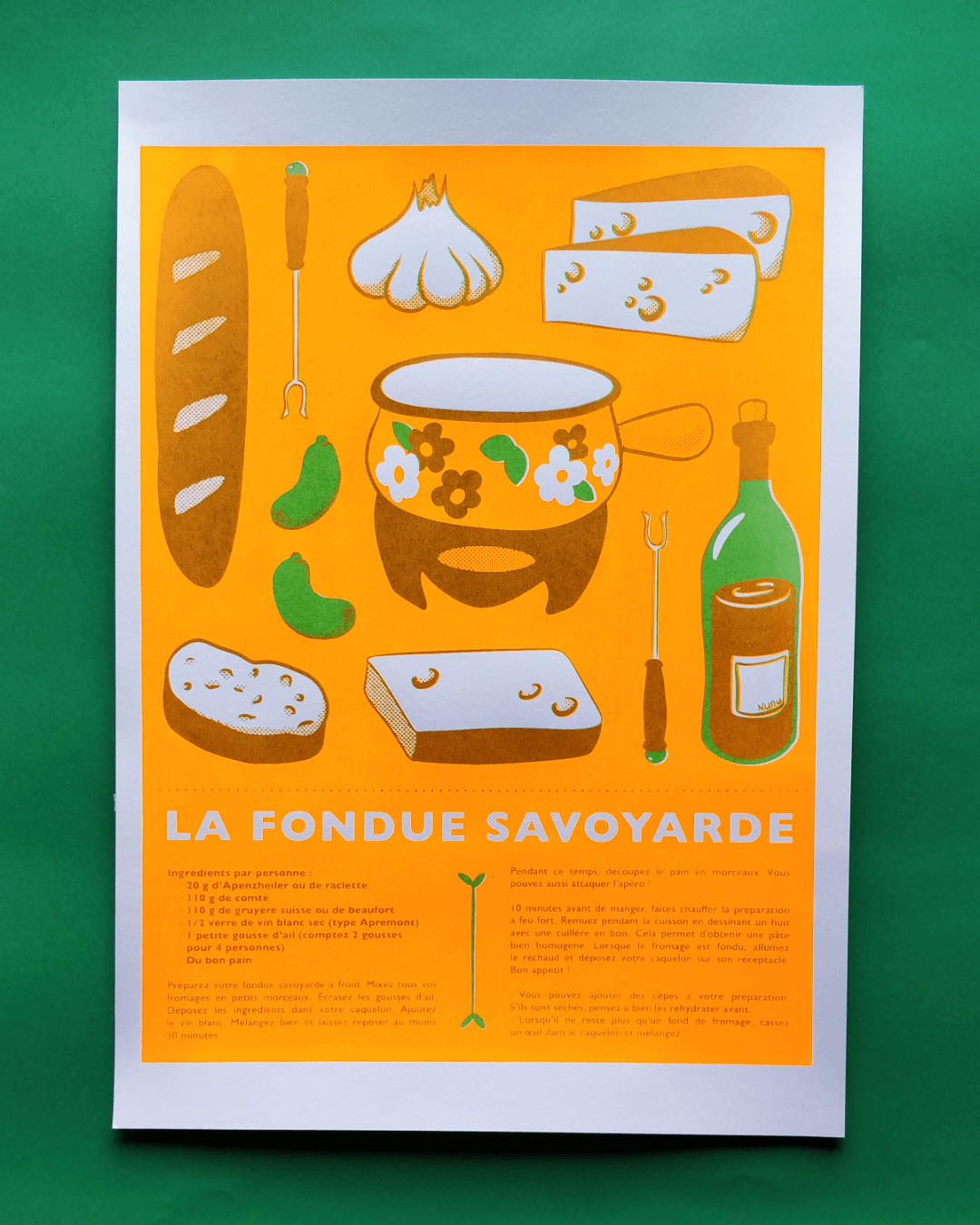 La sérigraphie offre des couleurs vives et intenses, avec une excellente tenue dans le temps. On travaille avec des encres que l’on prépare nous-mêmes avec des pigments. Cela permet d’obtenir des teintes impossibles à reproduire avec l’impression numérique (comme le doré, l’argenté ou le fluo par exemple). C’est la raison pour laquelle j’aime tant cette technique ! 🎨