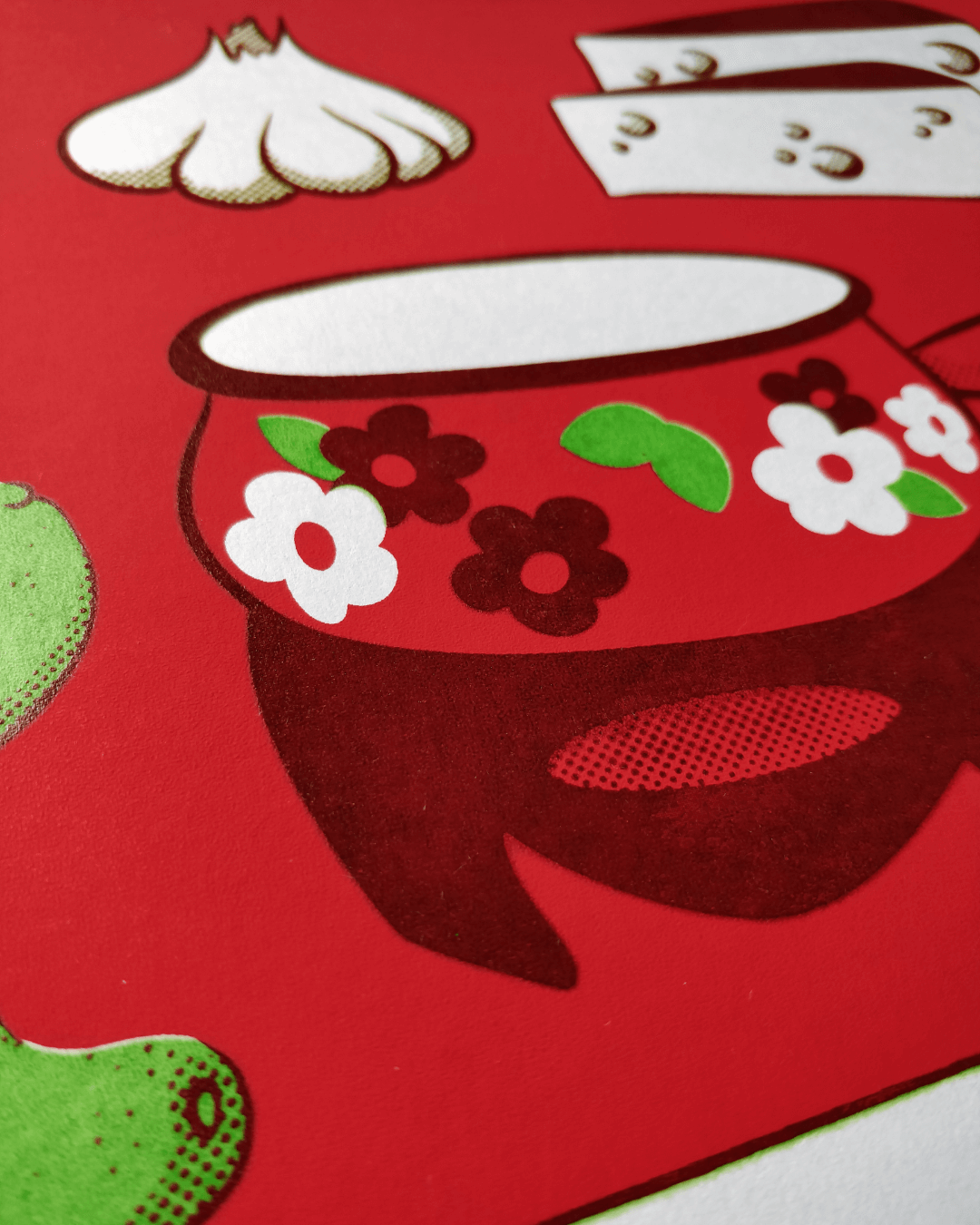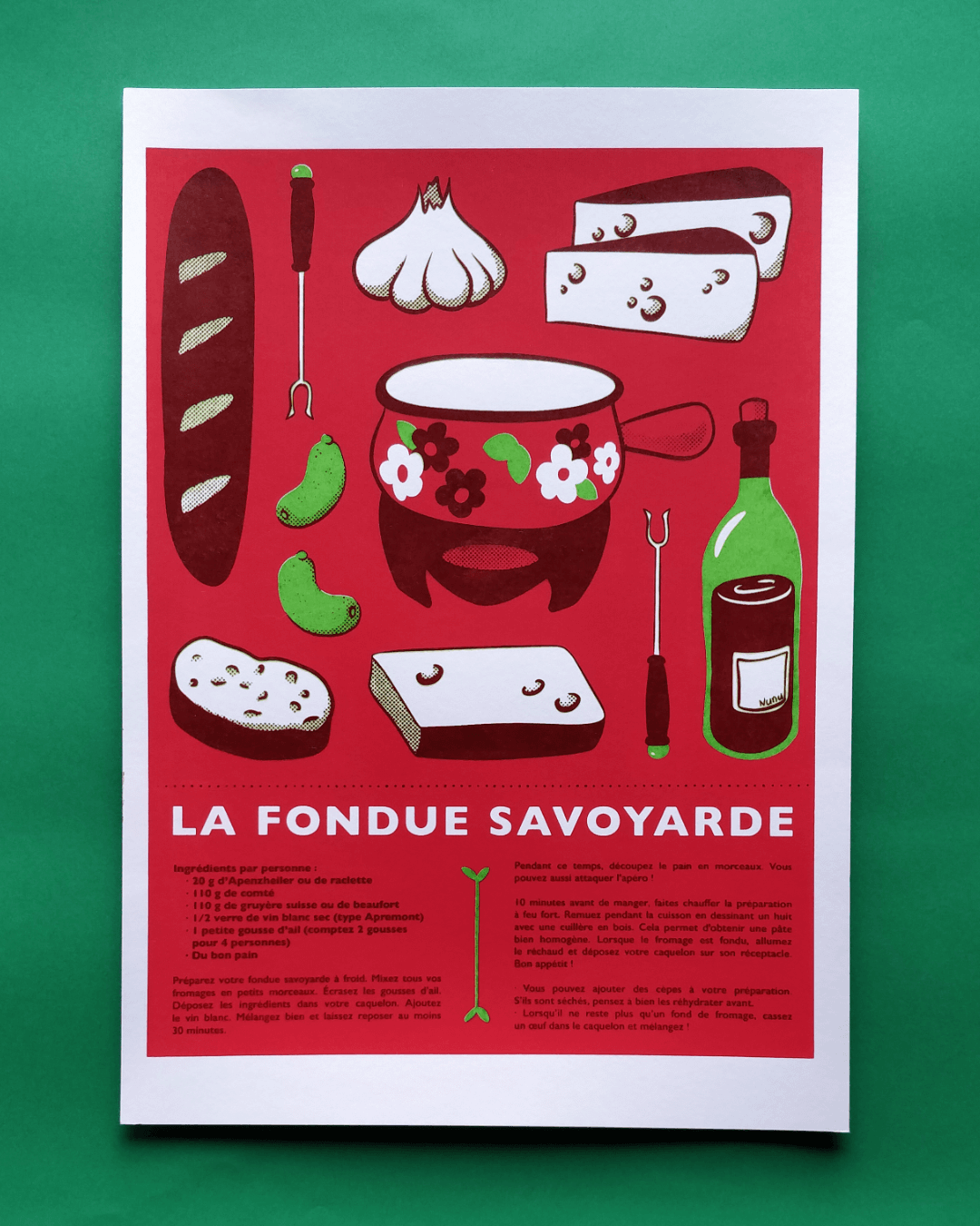 La sérigraphie offre des couleurs vives et intenses, avec une excellente tenue dans le temps. On travaille avec des encres que l’on prépare nous-mêmes avec des pigments. Cela permet d’obtenir des teintes impossibles à reproduire avec l’impression numérique (comme le doré, l’argenté ou le fluo par exemple). C’est la raison pour laquelle j’aime tant cette technique ! 🎨