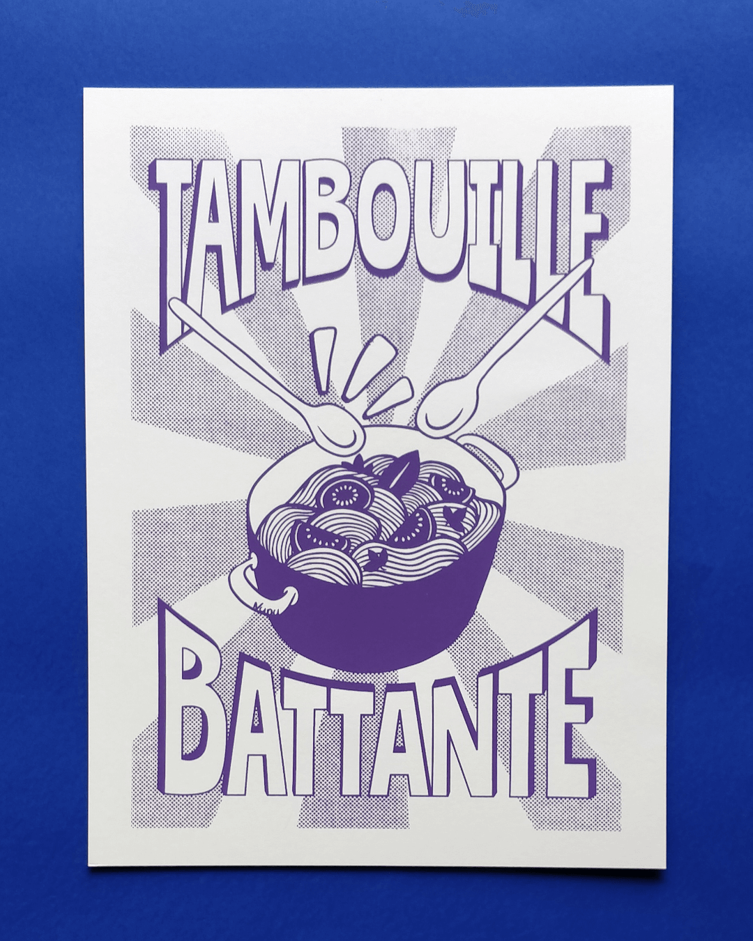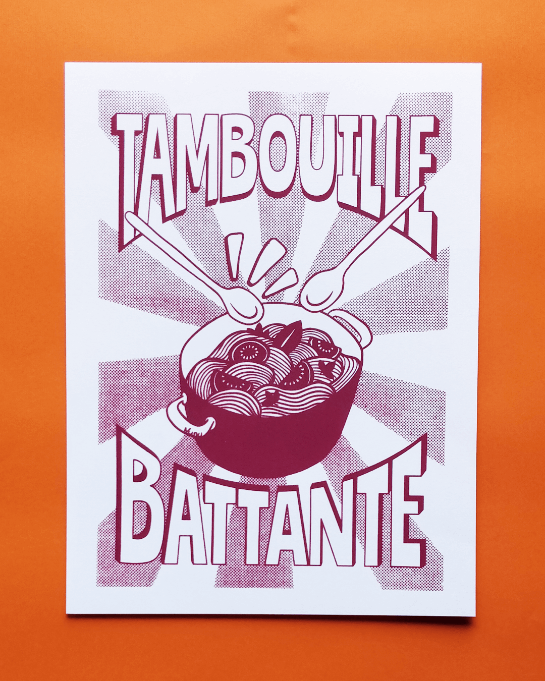 La sérigraphie offre des couleurs vives et intenses, avec une excellente tenue dans le temps. On travaille avec des encres que l’on prépare nous-mêmes avec des pigments. Cela permet d’obtenir des teintes impossibles à reproduire avec l’impression numérique (comme le doré, l’argenté ou le fluo par exemple). C’est la raison pour laquelle j’aime tant cette technique ! 🎨