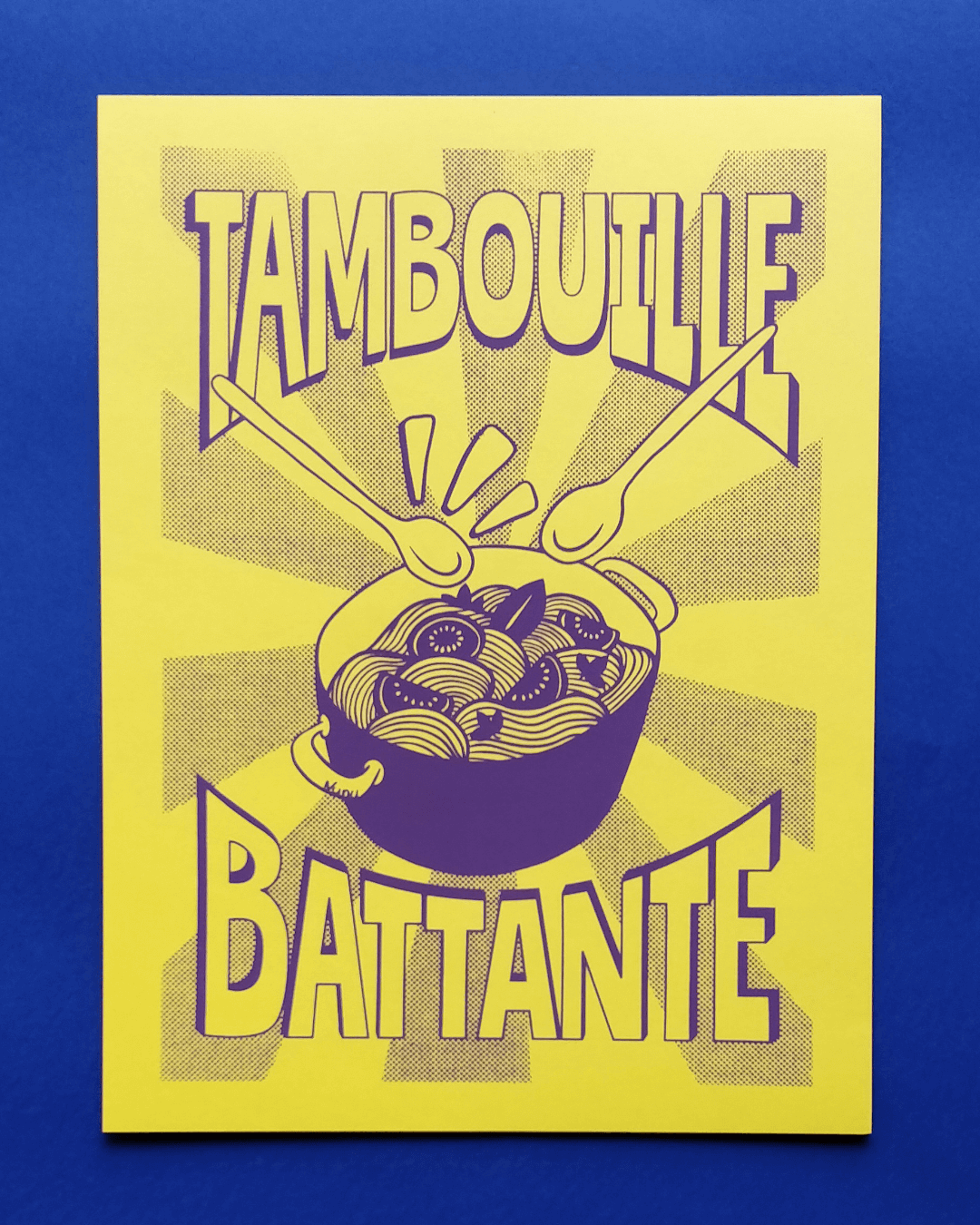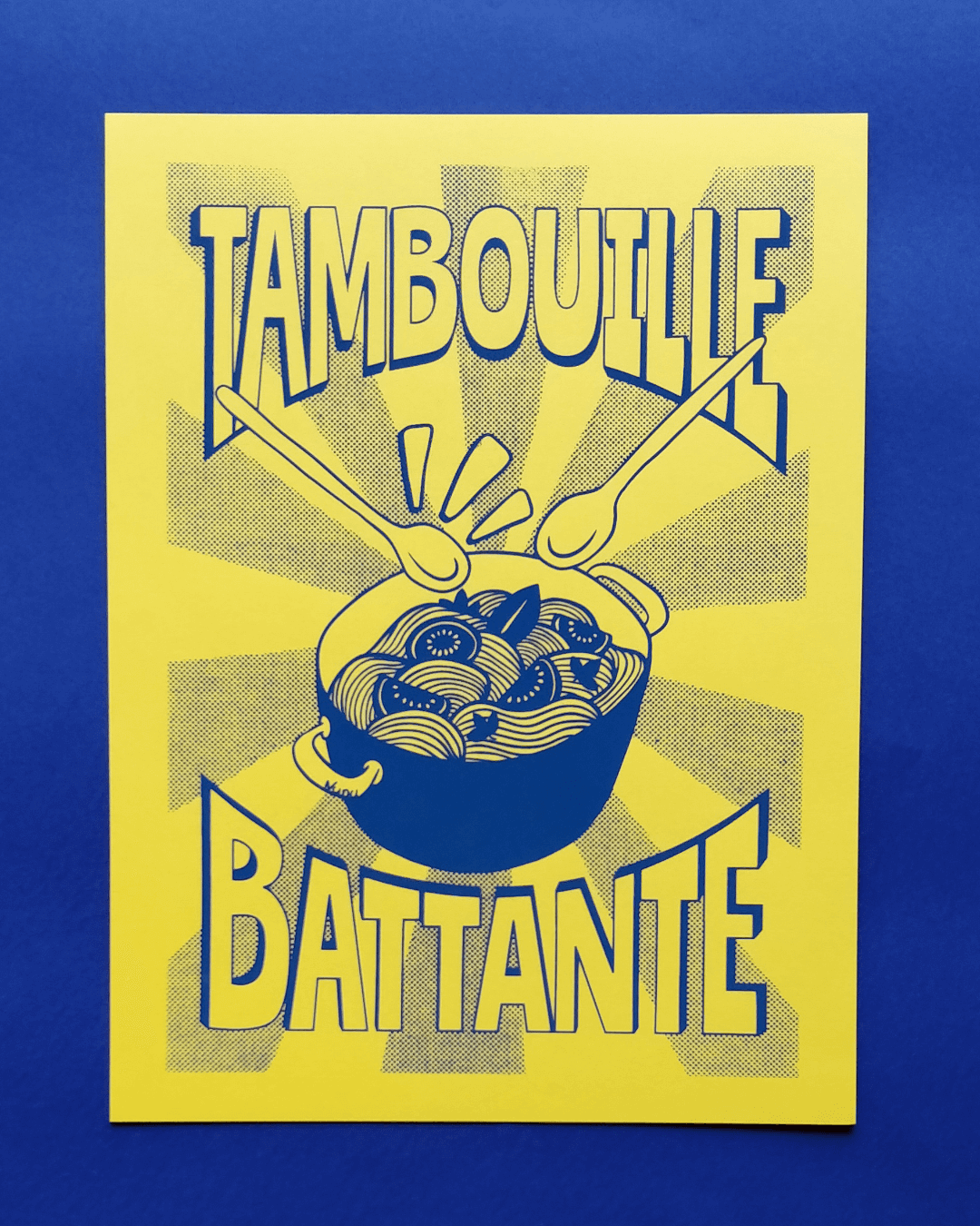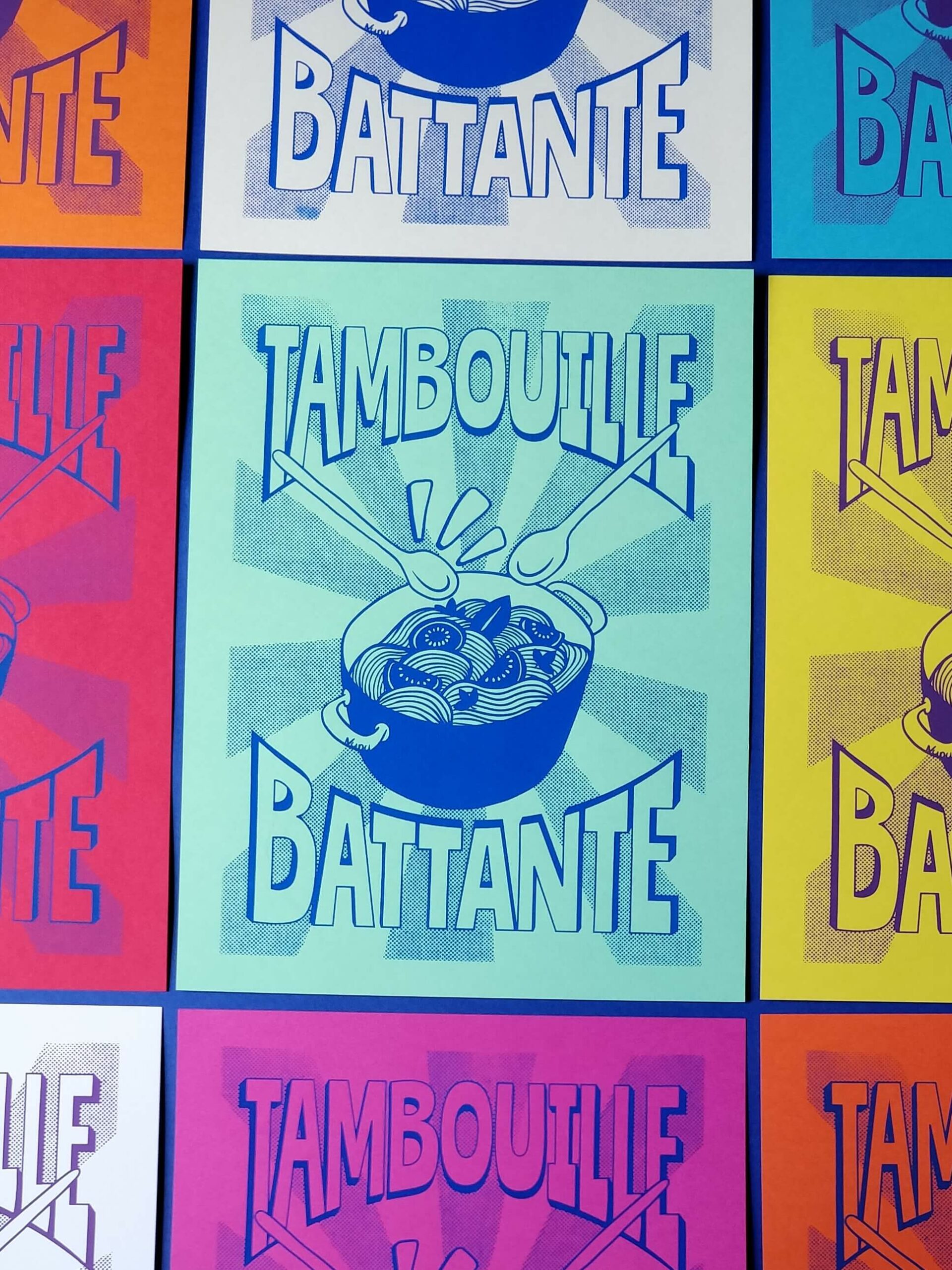 La sérigraphie offre des couleurs vives et intenses, avec une excellente tenue dans le temps. On travaille avec des encres que l’on prépare nous-mêmes avec des pigments. Cela permet d’obtenir des teintes impossibles à reproduire avec l’impression numérique (comme le doré, l’argenté ou le fluo par exemple). C’est la raison pour laquelle j’aime tant cette technique ! 🎨