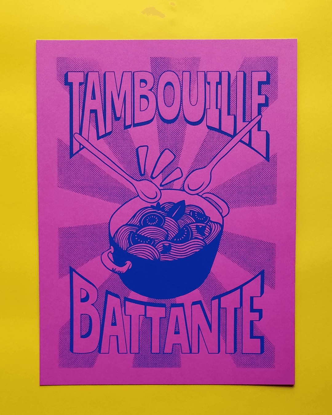 « Tambouille battante » doit sonner comme un cri du cœur, ou plutôt devrais-je dire du ventre ! 🥁 Elle annonce une effusion créative et culinaire. C’est pourquoi je l’ai déclinée dans toutes les couleurs. Je veux qu’elle mette du pep’s dans nos intérieurs, qu’elle nous donne envie d’assumer notre gourmandise et de mordre la vie à pleine dent ! 🦷