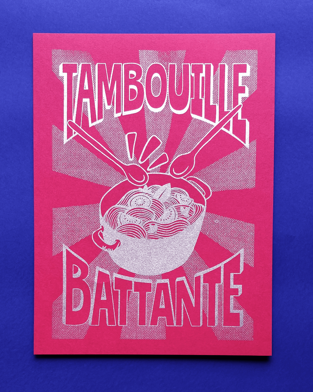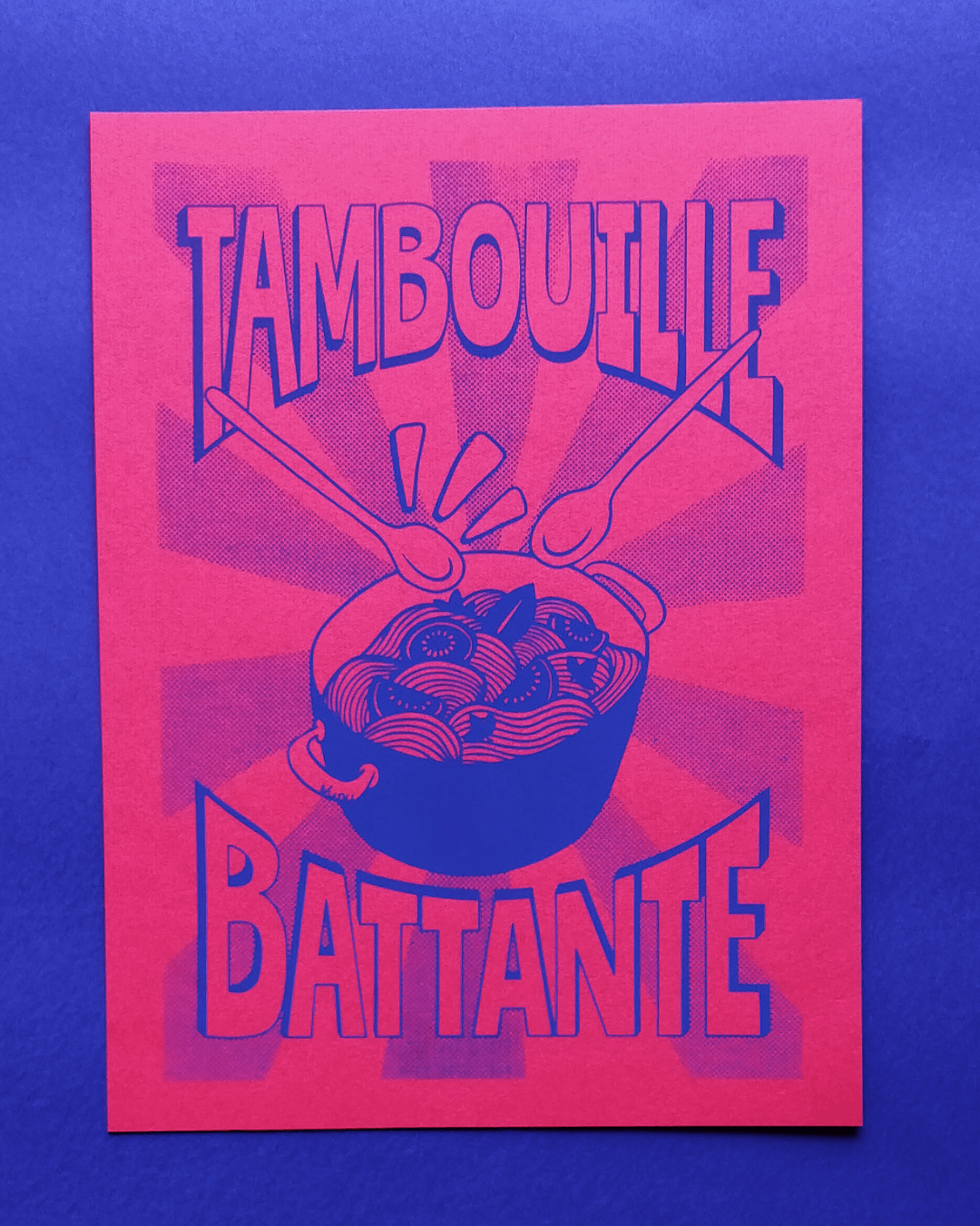 « Tambouille battante » doit sonner comme un cri du cœur, ou plutôt devrais-je dire du ventre ! 🥁 Elle annonce une effusion créative et culinaire. C’est pourquoi je l’ai déclinée dans toutes les couleurs. Je veux qu’elle mette du pep’s dans nos intérieurs, qu’elle nous donne envie d’assumer notre gourmandise et de mordre la vie à pleine dent ! 🦷