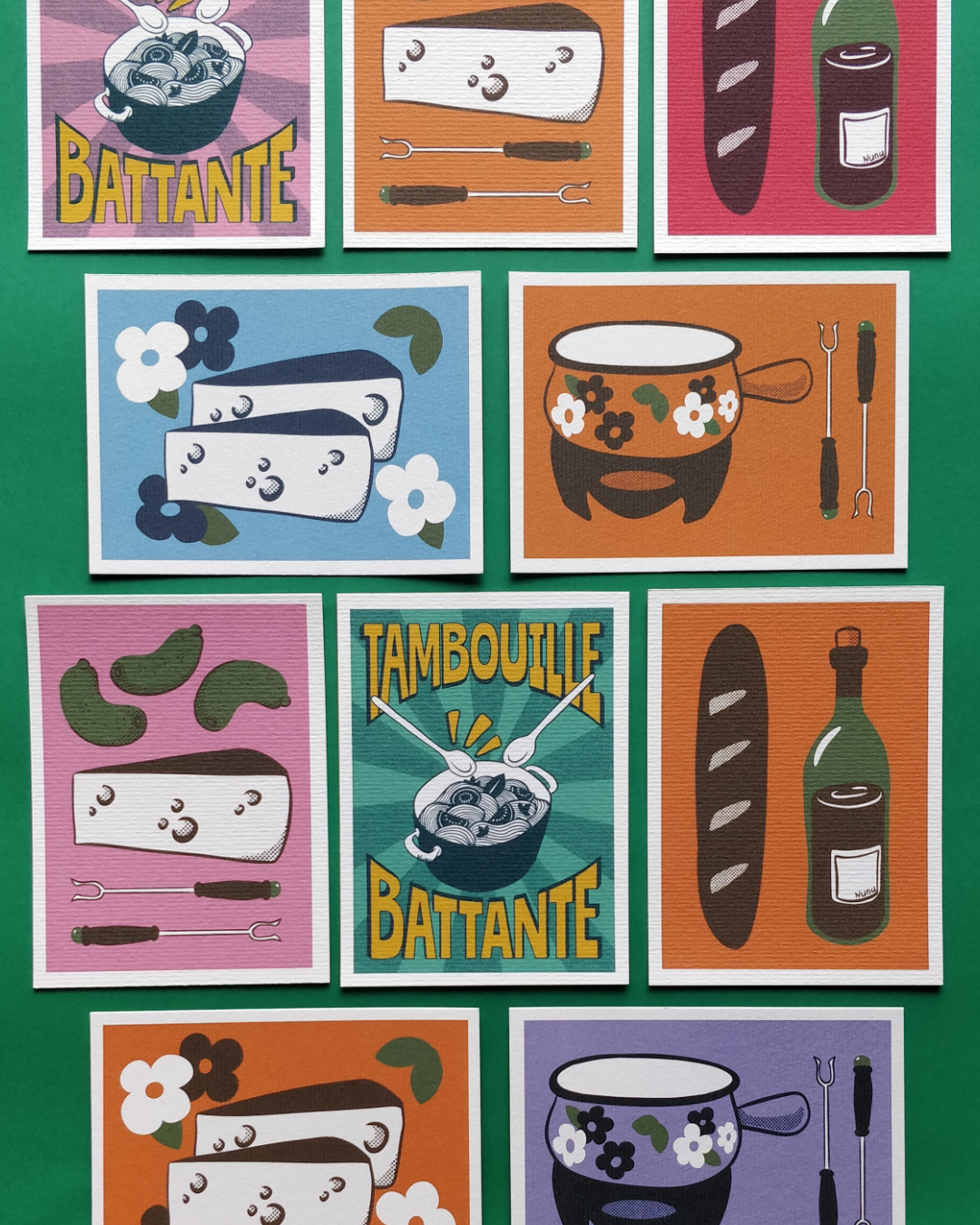Pas envie de choisir ? Commandez le lot de 12 cartes postales avec tous les motifs que j’ai créés pour cette collection ! Elles sont toutes conçues pour envoyer des mots gourmands et mordants. 😉🍡 Elle sont imprimées par mes soins dans mon atelier, sur un joli papier épais et texturé.