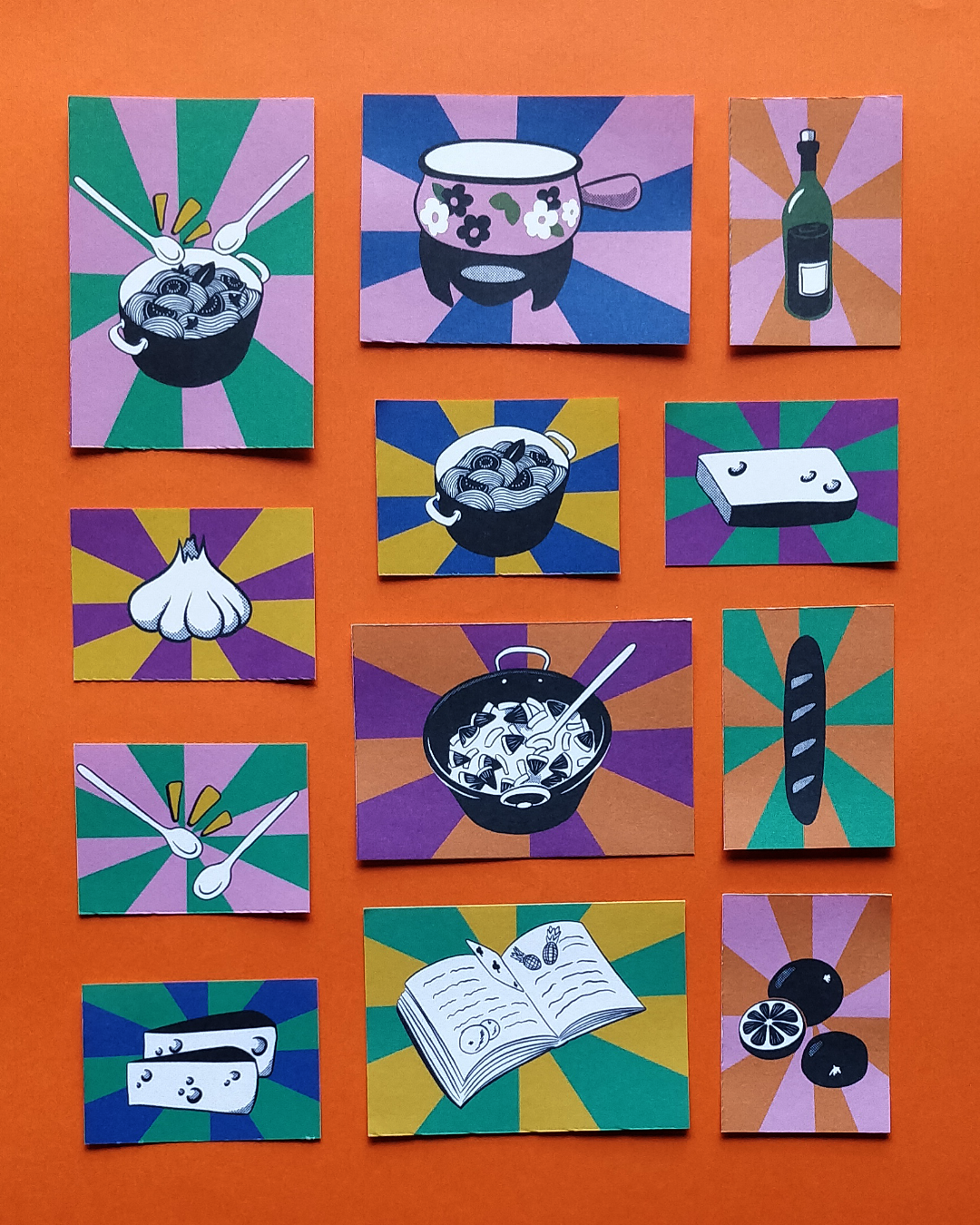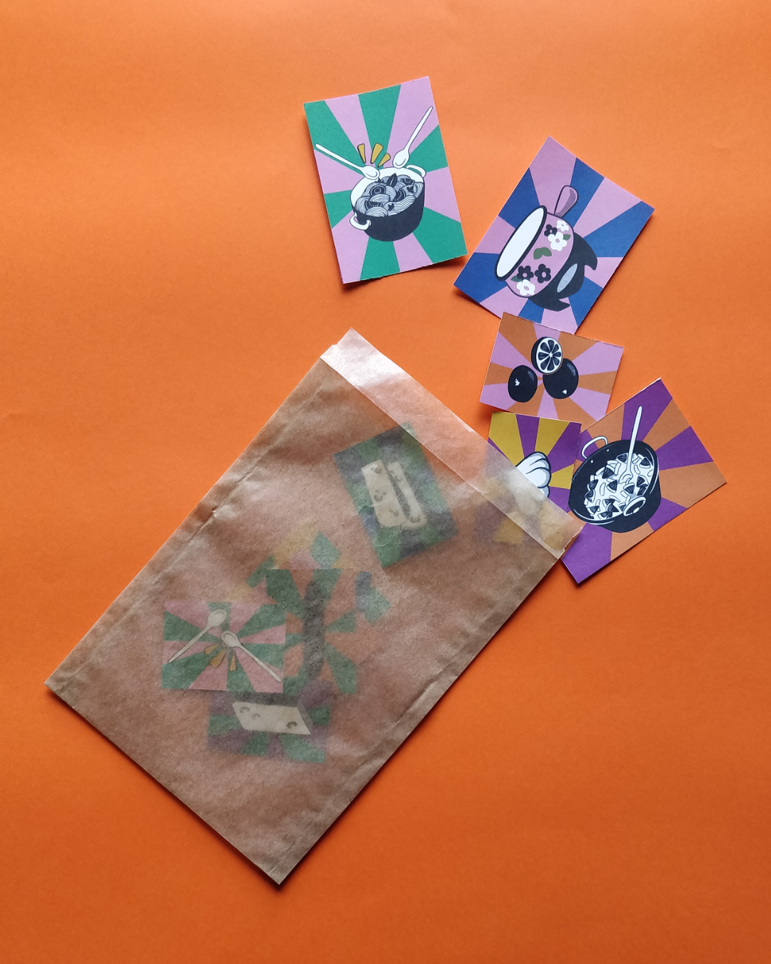 « Tambouille battante » est une collection d’illustrations à afficher, coller et utiliser au quotidien. C’est pourquoi j’ai créé une série de stickers pour décorer vos cahiers de recettes, vos carnets de rêveries ou vos courriers gourmands ! 💌 Ce pack contient 8 petits timbres et 4 grands timbres.